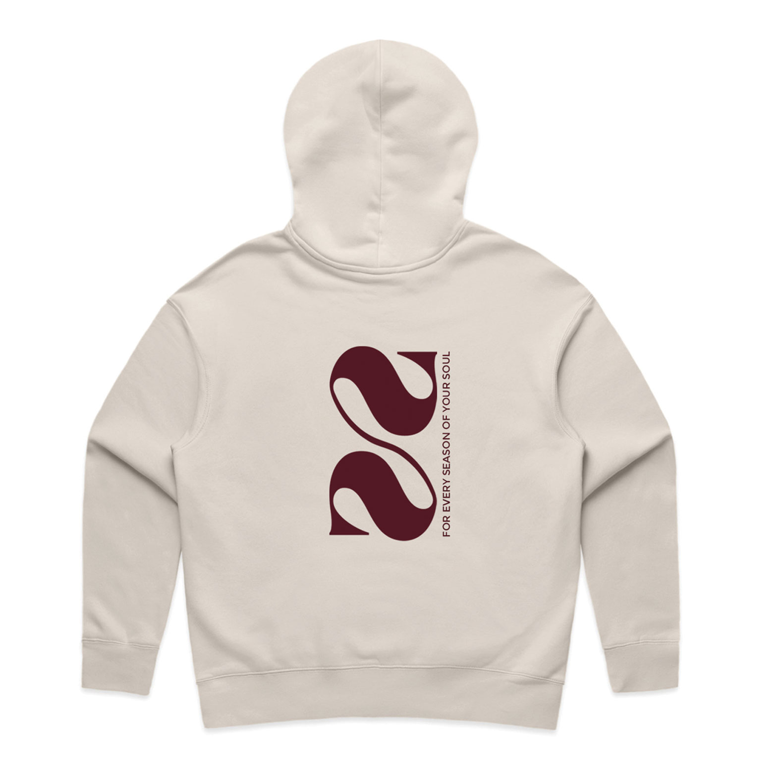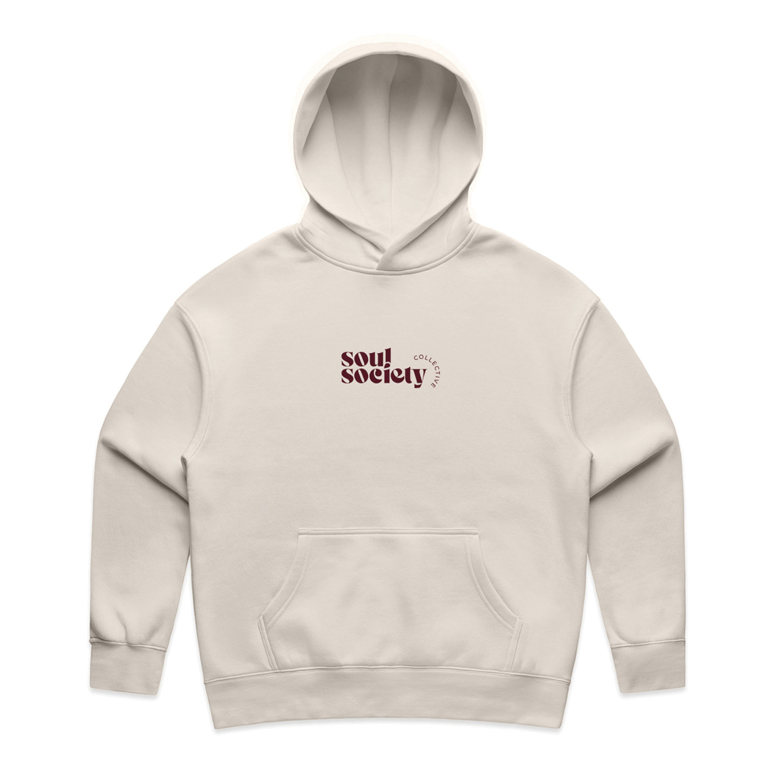 Super comfy hoodie jumper. Fleece inside. Front pocket. Branding front and back. Comes in cream with maroon graphics.